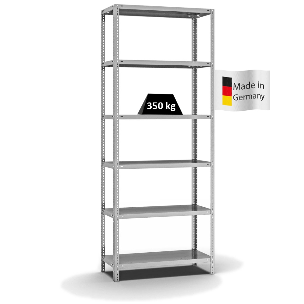 PROREGAL Fachbodenregal Schraubsystem | Grundregal | HxBxT 250x100x40cm | 6 Ebenen | Fachlast 350 kg | Beidseitig nutzbar | Verzinkt