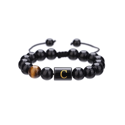 Bracciale regolabile da uomo in pietra naturale con design a lettere dell'alfabeto, personalizzabile con 26 lettere, perfetto come regalo, per occasioni casual e speciali