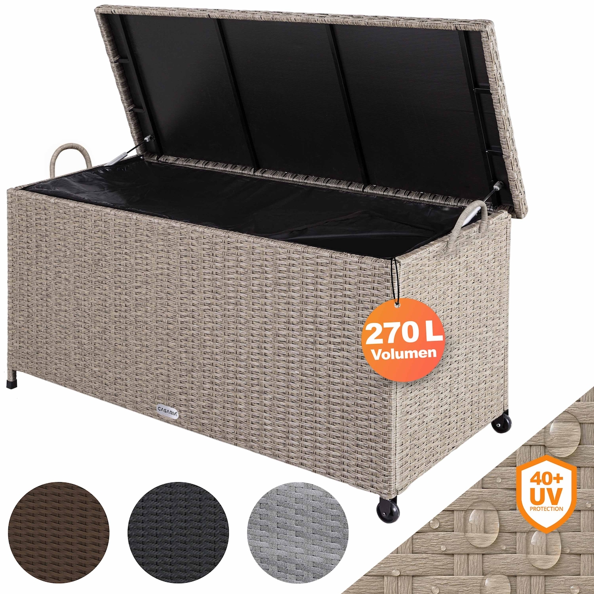 Casaria Auflagenbox Poly Rattan Rollbar Garten Box Beige