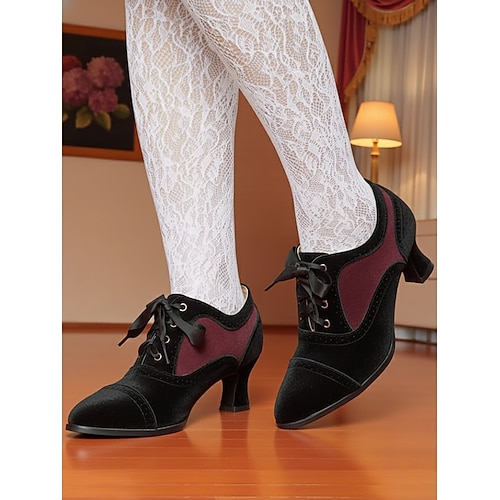 scarpe col tacco stringate vintage da donna in velluto nero e bordeaux – stile edoardiano anni '20, perfette per occasioni formali, tea party e abbigliamento quotidiano