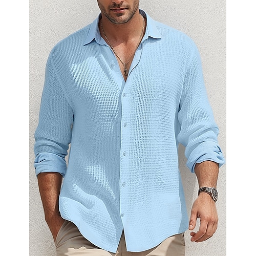 Per uomo Camicia Camicia estiva Camicia con bottoni Maglietta informale Camicia a cialda Nero Bianco Blu Kaki Manica lunga Liscio Bavero Giornaliero Da mare Abbigliamento Di tendenza Informale Comodo