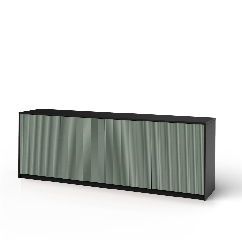 Buffet 4 portes en mélamine et MDF noir/vert sauge