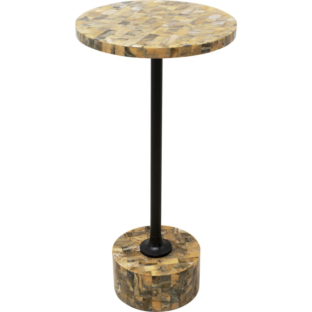 Tavolino con motivo in legno e acciaio, marrone e grigio D25cm