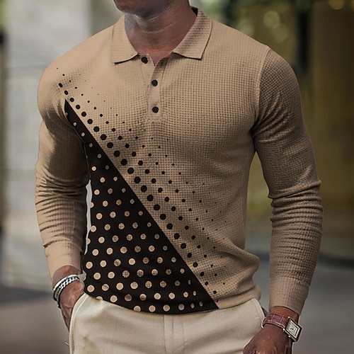 Per uomo Geometrico Magliette Polo a Nido d'Ape Manica Lunga Magliette polo Colletto Vintage Casual Vacanza Abbigliamento da sera Abbigliamento Quotidiano Bottoni Stampa 3D Primavera Autunno Inverno