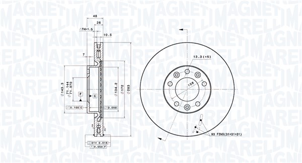 MAGNETI MARELLI Bremsscheibe 360406157601 vorne rechts links innenbelüftet Ø283mm 283mm für PEUGEOT (DF-PSA) CITROËN 1667849980 1642761380 9803918180