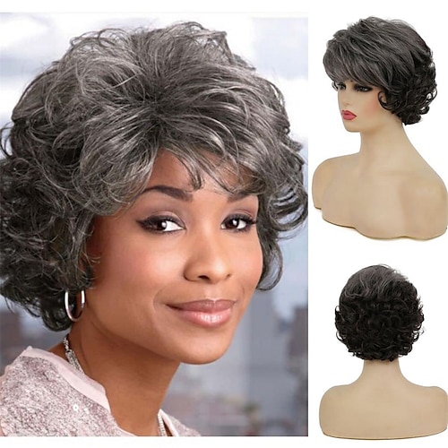 parrucche grigie corte ricci per le donne parrucca sintetica naturale soffice a strati cosplay di halloween resistente al calore