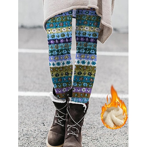 Per donna Leggings Vacanza Vintage Stile Etnico Lunghezza intera Vita Alta Grafico Astratto Calore Termico Comodo Confortevole Elasticizzato All'aperto Casual Casuale Verde chiaro Rosso Blu Verde