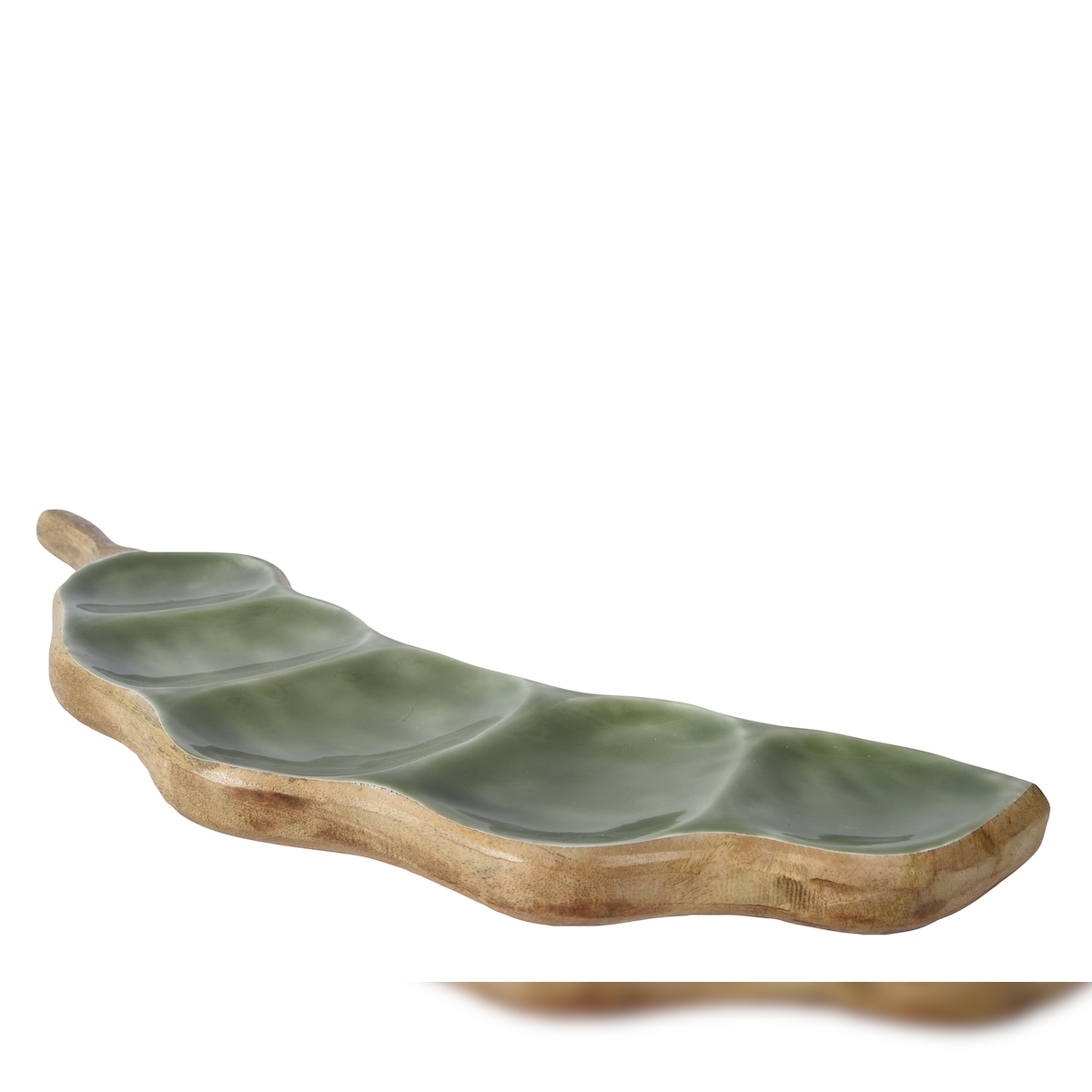 Decoris Dekoteller Bohnenform Holz 50cm - Dekoschale Dekotablett Holzteller Holztablett Wohndeko Küche Tischdeko Holzdeko Natur Braun Grün