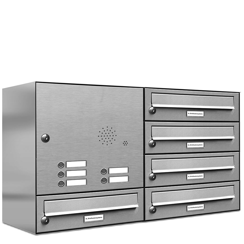 AL Briefkastensysteme 5 Fächer Premium Edelstahl Wand Briefkasten Anlage mit Klingeln, Post A4, modern, robust, wetterfest, Artikelnummer: 132V5EA2KS