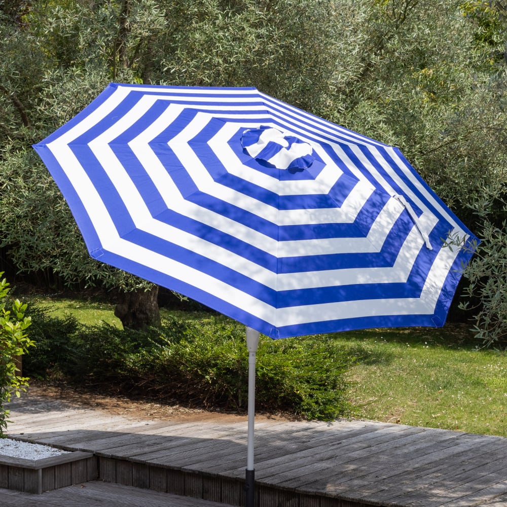 Ombrellone tondo 2,70 m allum., telo righe blu