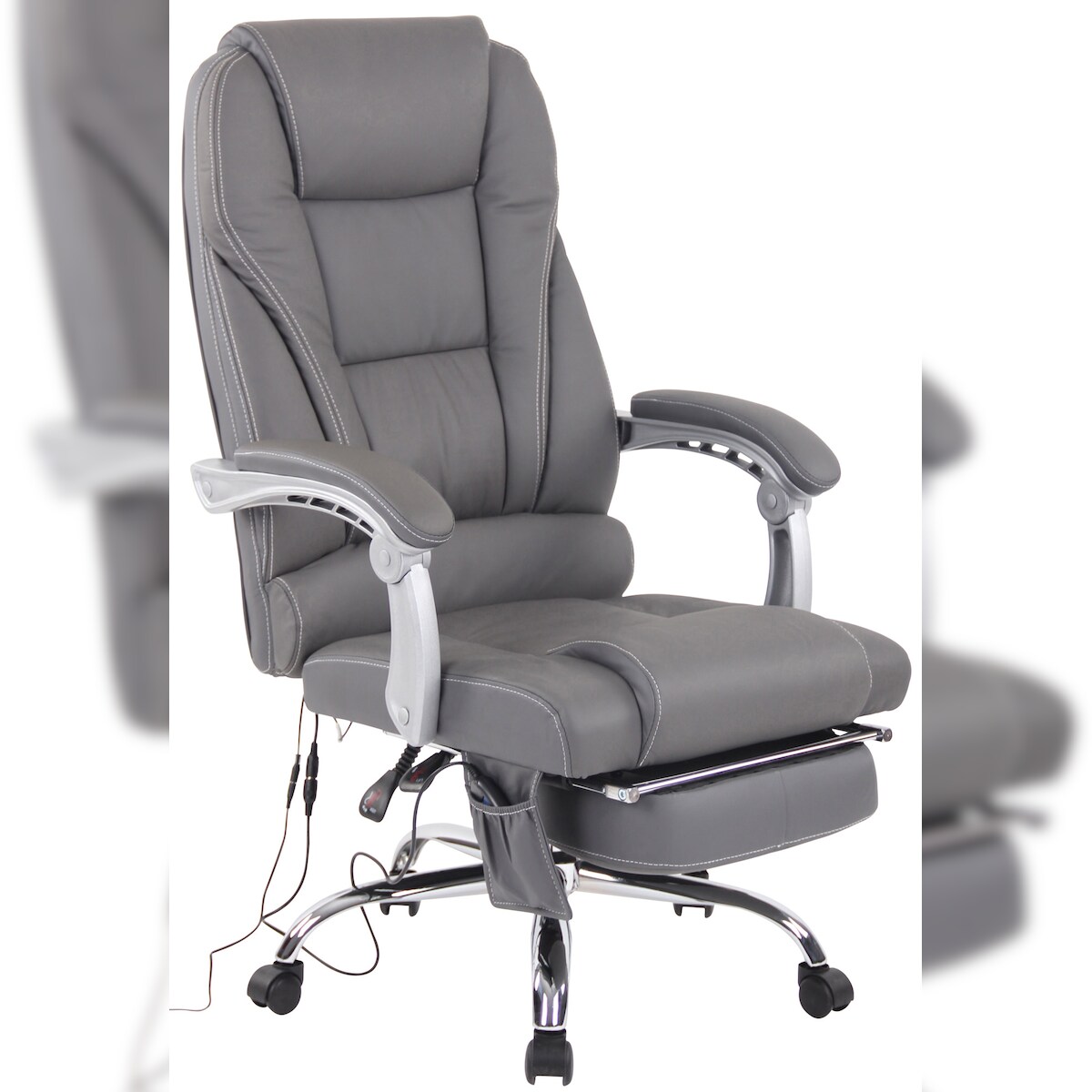 CLP Bürostuhl Pacific Echtleder mit Massagefunktion grau