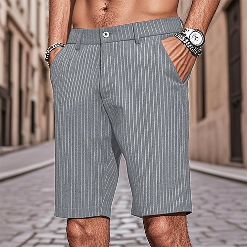 Per uomo Shorts eleganti Shorts da Lavoro Pantaloncini da golf Tasca A righe Comodità Traspirante Lunghezza al ginocchio All'aperto Affari Sport Casual Nero Grigio chiaro