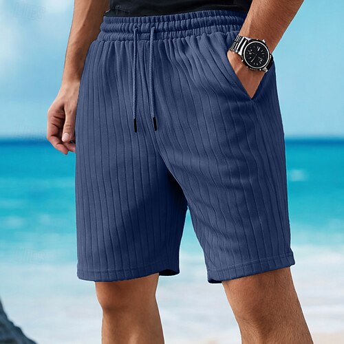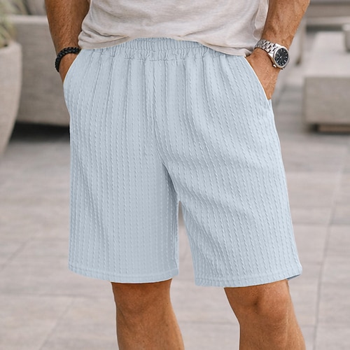 Per uomo Pantaloncini Estivi Shorts da Spiaggia Pantaloncini casual Maglia a trecce Pantaloncini strutturati Coulisse Elastico in vita Tinta unica Comodità Lunghezza al ginocchio Quotidiano