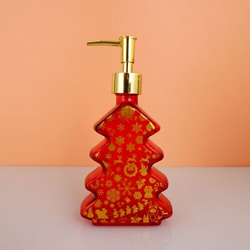 flacone dispenser a pompa manuale in vetro con albero di Natale - contenitore da viaggio riutilizzabile per sapone/lozione/detergente rosso/verde da 300 ml con motivo a fiocco di neve dorato con renna