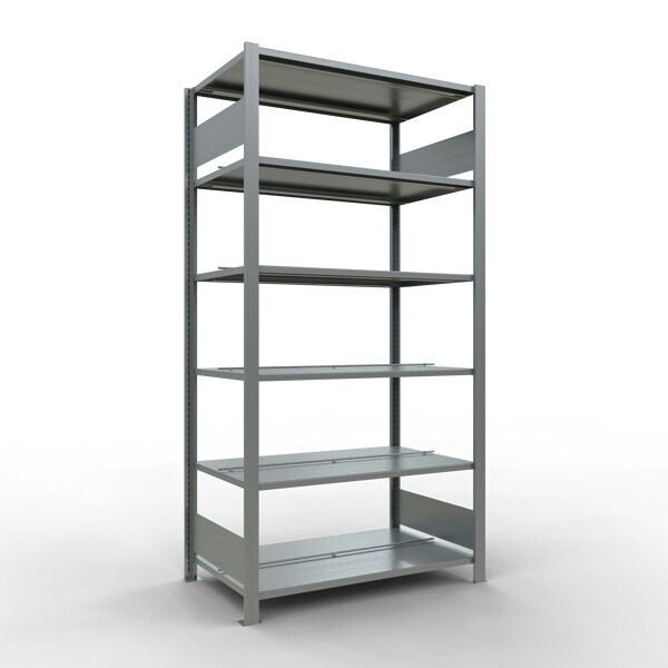 SCHULTE Lagertechnik Grundregal, Büro-Fachbodenregal Stecksystem MULTIplus150, 2000 x 1000 x 600 mm (HxBxT), 6 Fachböden, Längenriegel, verzinkt, mit Mittelanschlag