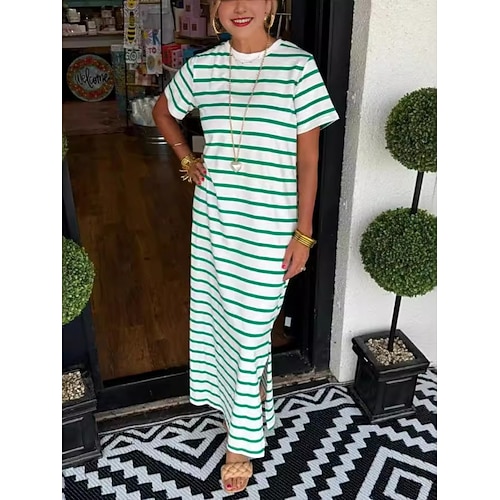 Per donna Abito maxi Vestito T-Shirt Casual Quotidiano All'aperto Ferie Vestibilità regolare A righe Manica Corta Girocollo Nero Bianco Verde Blu scuro Estate