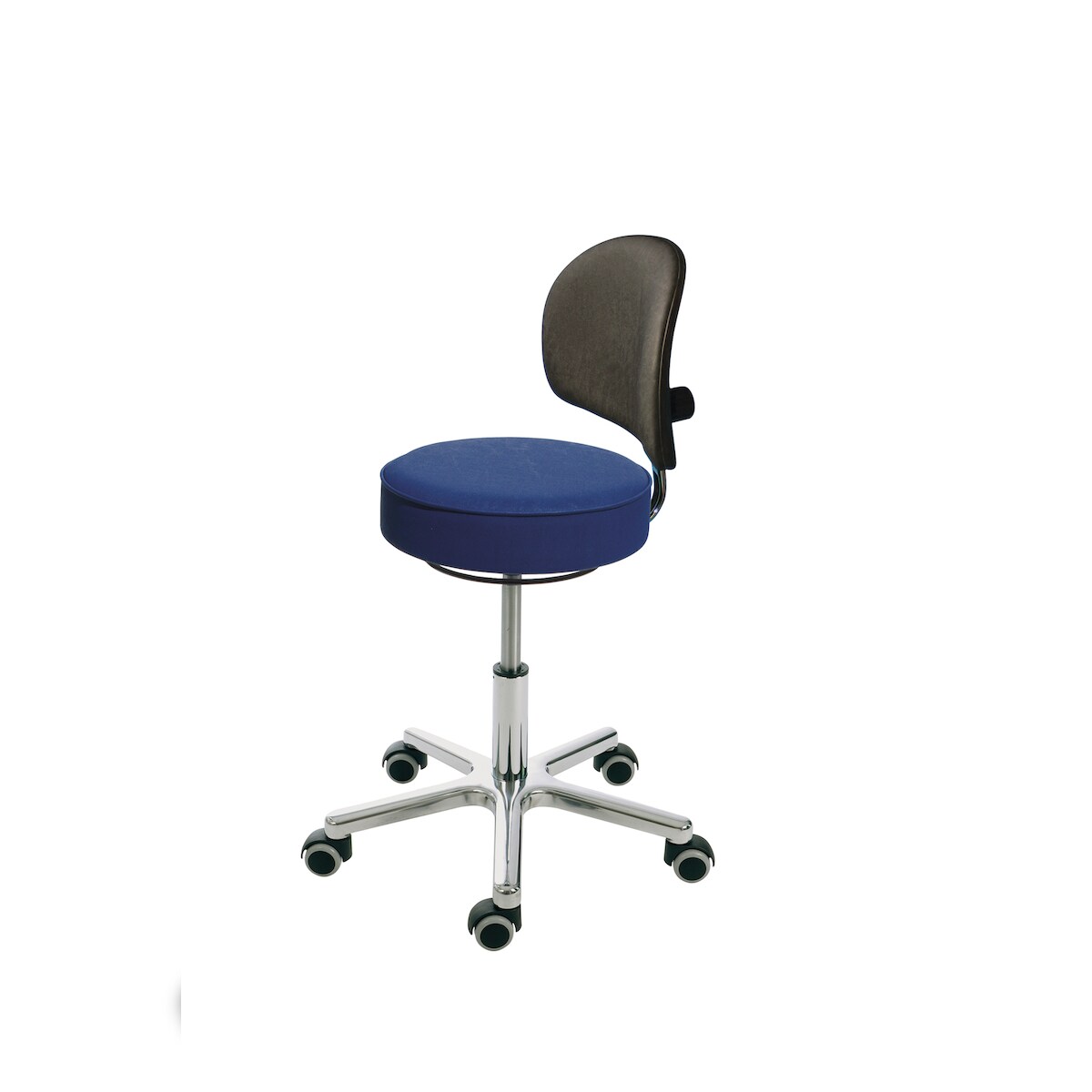 PROREGAL Drehhocker Indianapolis High, Rückenlehne | Sitzhöhe 54-72cm | Tragfähigkeit 110kg | Kunstleder-Sitz | Aluminium-Fußkreuz, Rollen | Atollblau