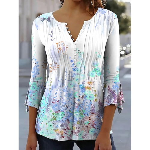 Per donna Maglietta Tinta unica Casual Manica 3/4 Scollo a V Top Regolari Quotidiano Bianco Blu Reale Cachi Azzurro Estate Primavera