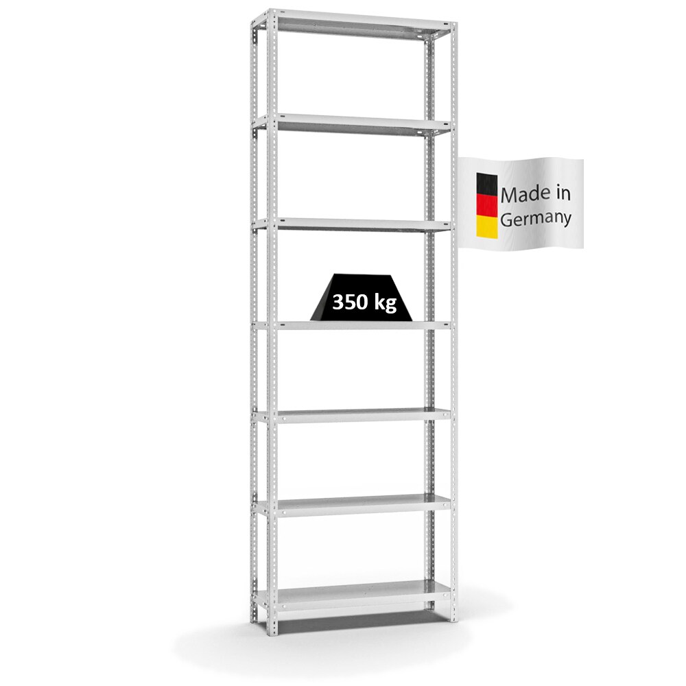 PROREGAL Fachbodenregal Schraubsystem | Grundregal | HxBxT 300x100x30cm | 7 Ebenen | Fachlast 350 kg | Beidseitig nutzbar | Lichtgrau