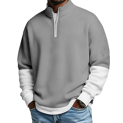 Per uomo POLO Polo con zip a un quarto Ufficio Da tutti i giorni Bavero Manica lunga Di tendenza Comodo Color Block Tasche Zip Up Primavera Autunno Standard Nero Marrone Verde militare Blu scuro