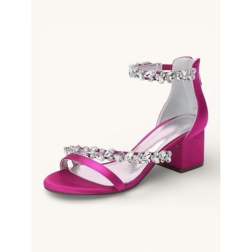 sandali da donna con tacco a blocco in raso viola - scarpe da sera con cinturino alla caviglia decorato con cristalli per eleganti banchetti e cocktail party
