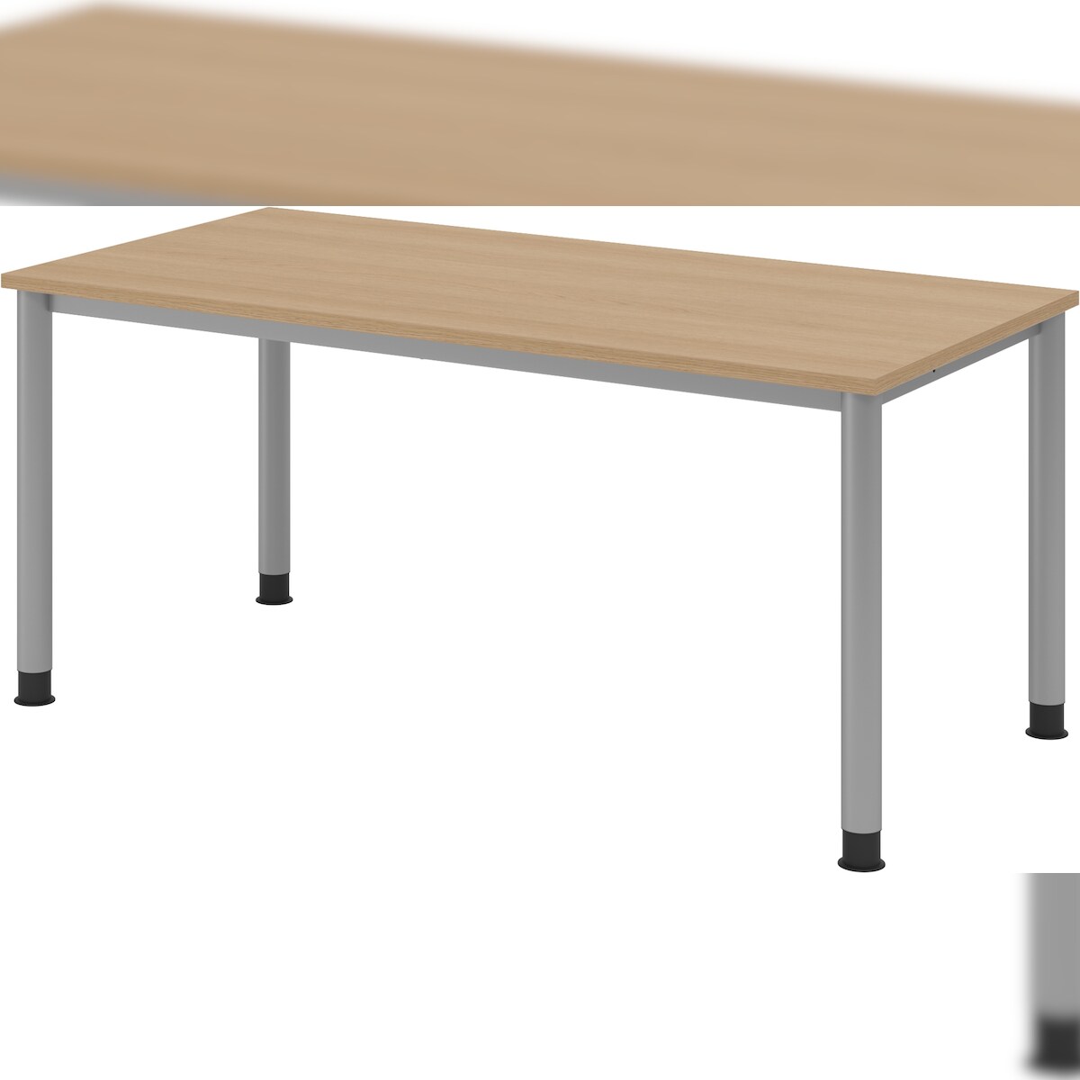 bümö höhenverstellbarer Schreibtisch H-Serie 160x80 cm in Eiche, Gestell in Silber - PC Tisch für's Büro manuell höhenverstellbar, Computertisch
