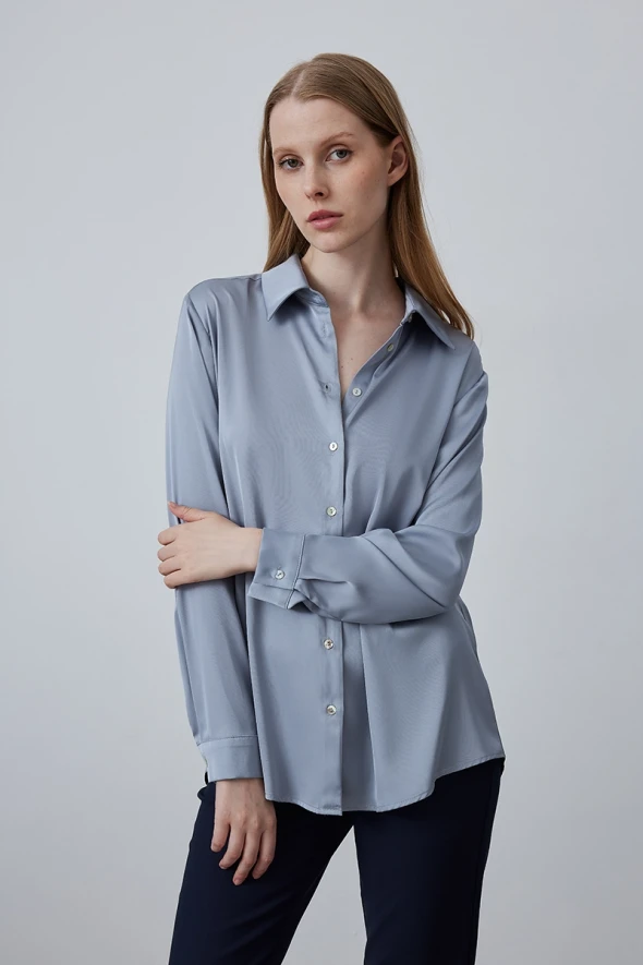 Gusto Womens Classic Satin Shirt - Grey - Size Large | Gusto Sale | Discount Designer Brands