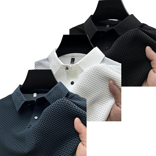 Polo da uomo 3 pezzi, maglietta da golf casual, classica, a maniche corte, alla moda, basic, tinta unita, confezione multipla da 3 pezzi, estiva, per tutte le stagioni, vestibilità regolare