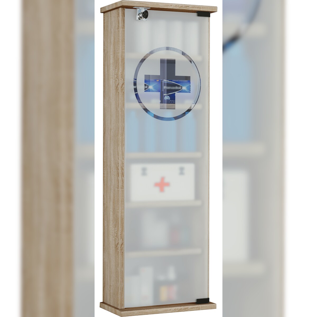 VCM Medizinschrank Gusal Sonoma-Eiche H. 92 x B. 31 x T. 18 cm