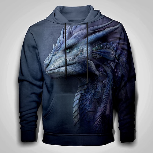 Per uomo Drago 3D Felpe con cappuccio Felpa Cool Festa Casual Manica Lunga Girocollo Con Cappuccio Club Abbigliamento casual alla moda Nero Blu Blu scuro Coulisse Grafico Autunno Inverno progettista