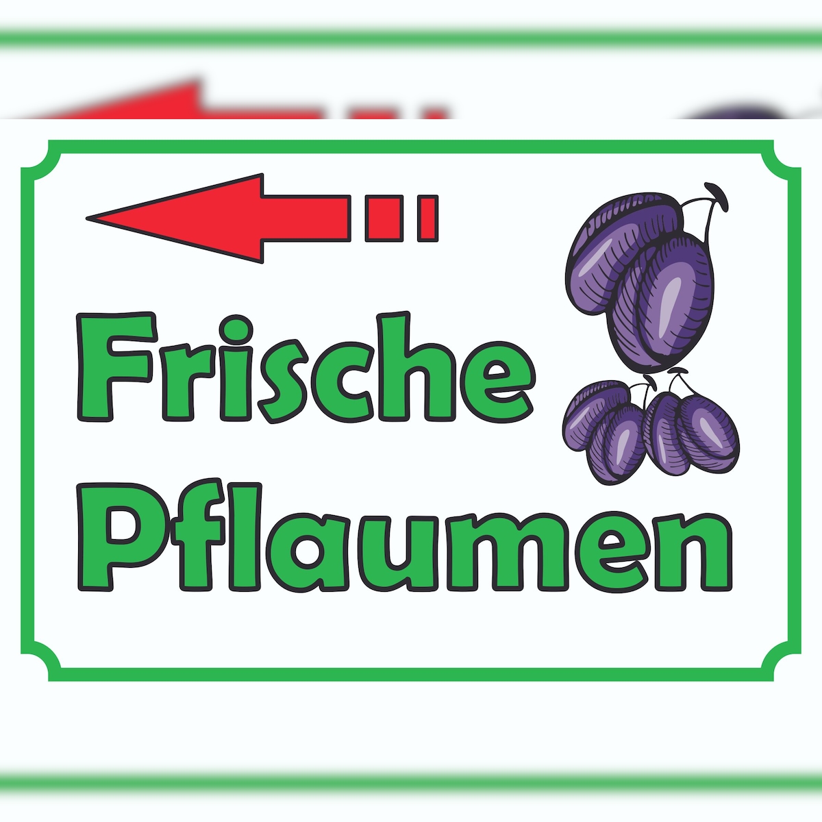 Verkaufsschild Schild Frische Pflaumen mit Pfeil nach links A1 (594x841mm)
