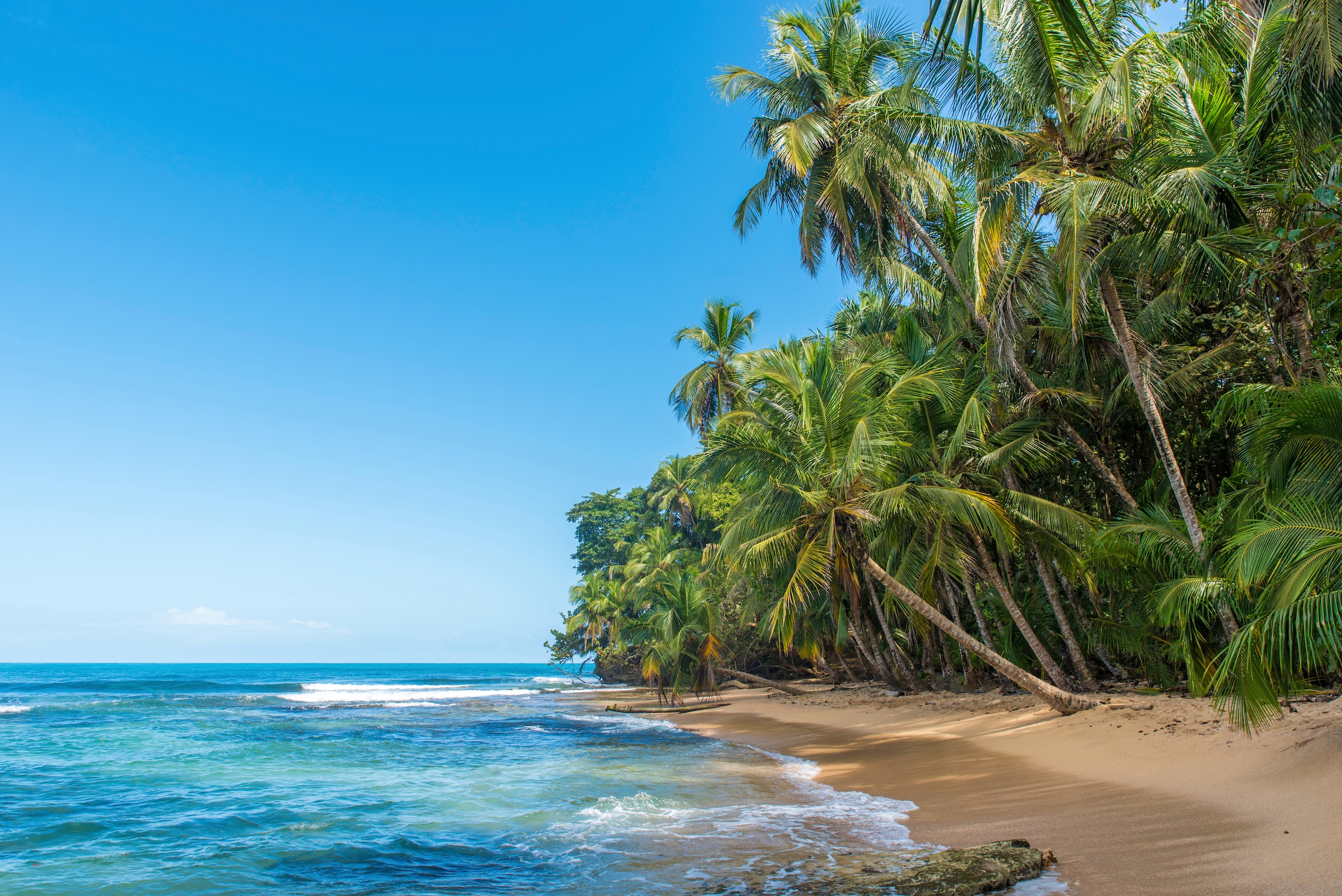 Papermoon Fototapete "KÜSTE-NATUR LANDSCHAFT MEER STRAND BÄUME BERGE PALMEN" bunt B/L: 4,5mm x 2,8mm, Bahnen: 9 Stk. St.
