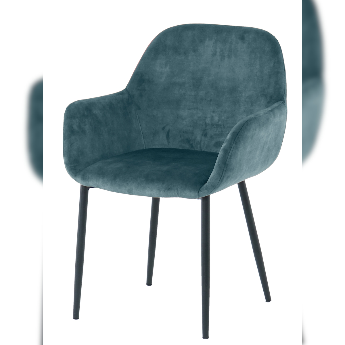 SIT Möbel 2er-Set Samt-Armlehnstuhl | ausgestellte Armlehnen | Bezug Samt blau | Beine Metall schwarz | B 48 x T 57 x H 84 cm | 02405-13 | Serie STUHL