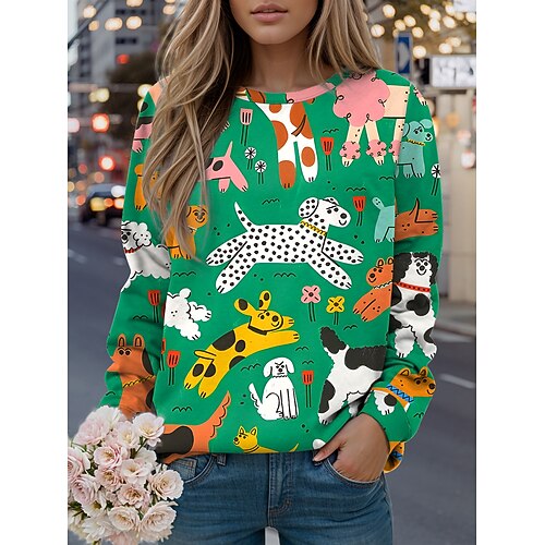 Per donna Felpe Grafico Animale Casual Manica Lunga Girocollo Top Regolari Streetwear Casuale Ferie Stampato Nero Giallo Verde chiaro Verde Primavera Autunno Inverno