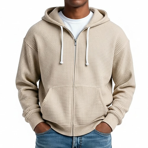 Per uomo Felpa con cappuccio Felpa con cappuccio a zip intera Felpa con cappuccio a nido d'ape Bianco Verde chiaro Blu marino Verde scuro Viola Con Cappuccio Semplice Con zip Testurizzato Casuale