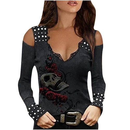 Blusa da donna floreale stilosa casual a maniche lunghe collo a V top regolari stampa quotidiana nera rossa khaki grigio scuro estate primavera autunno