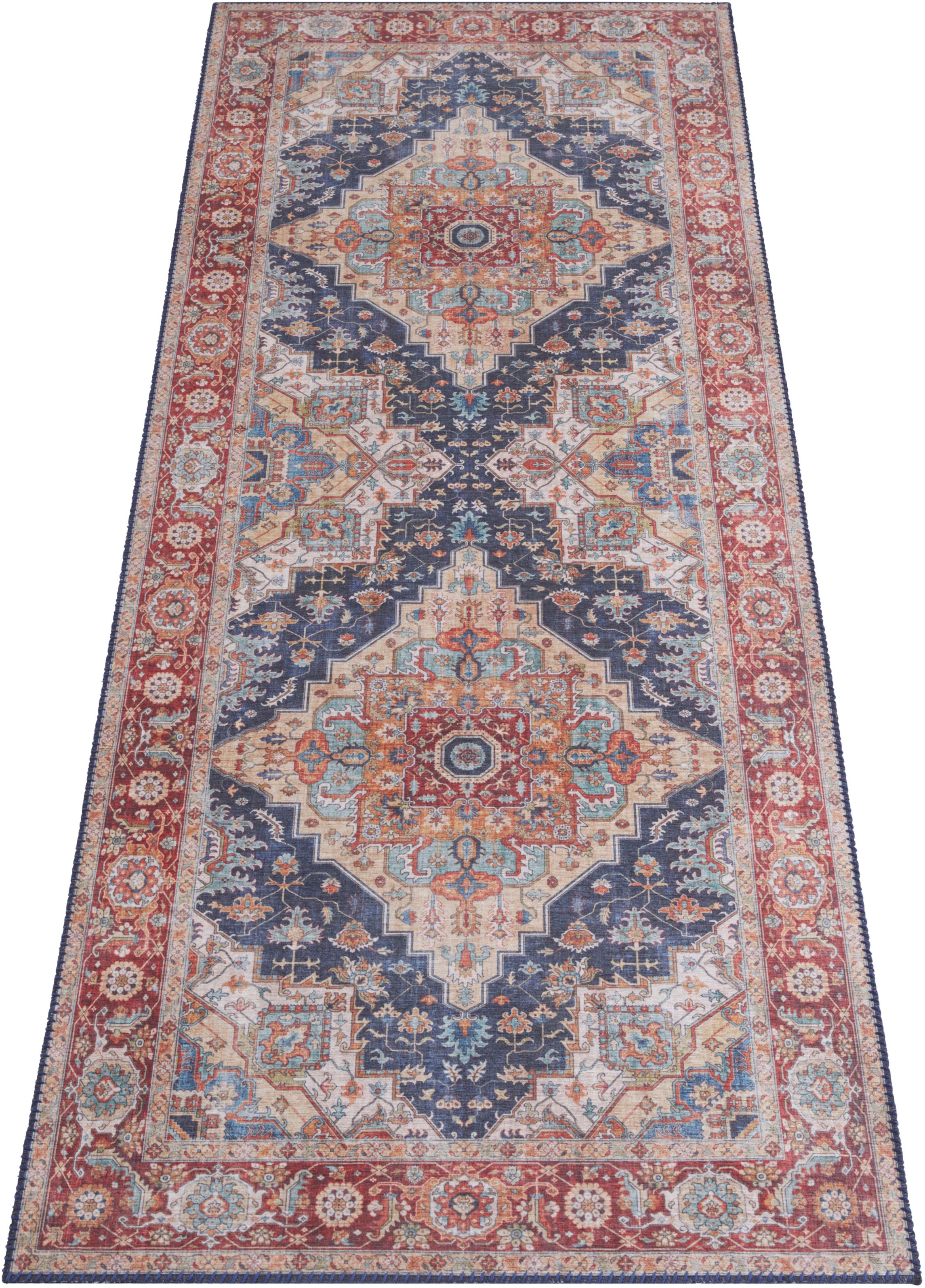 Teppich NORTHRUGS "Sylla" Gr. 12, blau (indigo), B:80cm H:5mm L:200cm, Polyester, Teppiche, Orientalisch, Läufer, Vintage, Wohnzimmer, Schlafzimmer, Esszimmer