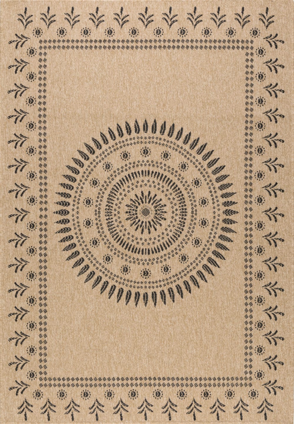 Tapis intérieur et extérieur effet jute motif oriental noir 160x230