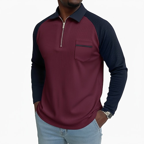 Per uomo POLO Polo con zip a un quarto Strada Da mare Chiusura lampo quarto Manica lunga Di tendenza Essenziale Tinta unica Tasche Primavera Autunno Standard Nero Bianco Borgogna Blu marino Cachi