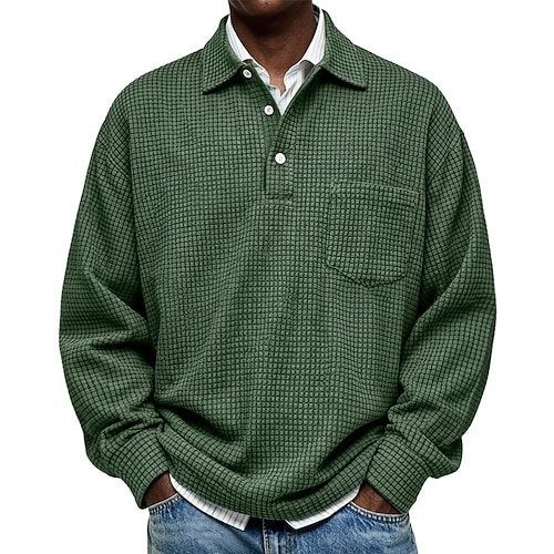 Per uomo Magliette Polo a Nido d'Ape Polo Casuale Streetwear Bavero Manica Lunga Essenziale Moderno Semplice Tasca Bottoni Primavera Autunno Vestibilità regolare Blu Grigio Nero Bianco Verde chiaro