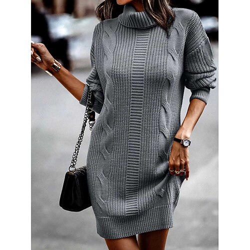Per donna Felpa Abito maglione Casual Morbido Colore Puro A Coste Dolcevita Lavorato a maglia Manica Lunga Top lunghi Maglia All'aperto Quotidiano Weekend Nero Rosa Autunno Inverno