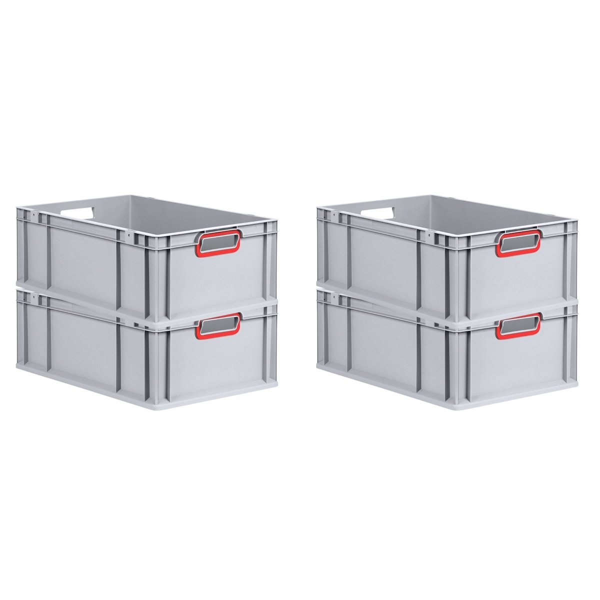 PROREGAL 4x Eurobox NextGen Color | HxBxT 22x40x60cm | 44 Liter | Griffe rot offen | Verstärkter Boden | Eurobehälter