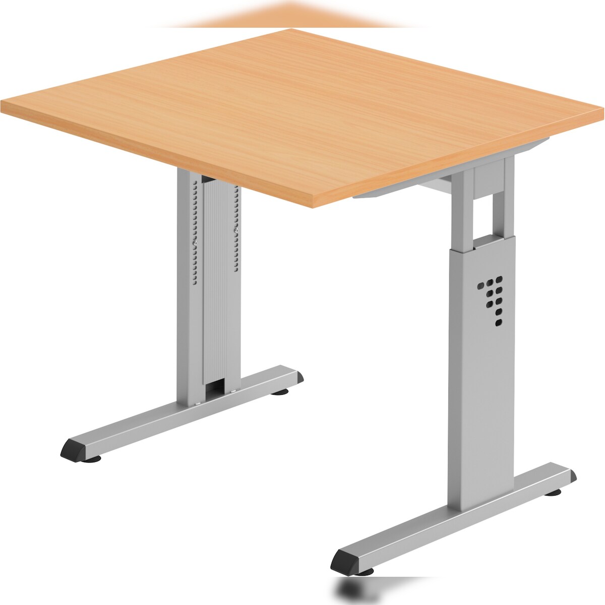 bümö höhenverstellbarer Schreibtisch R-Serie 80x80 cm in Ahorn, Gestell in Silber - PC Tisch klein für's Büro manuell höhenverstellbar, Computertisch
