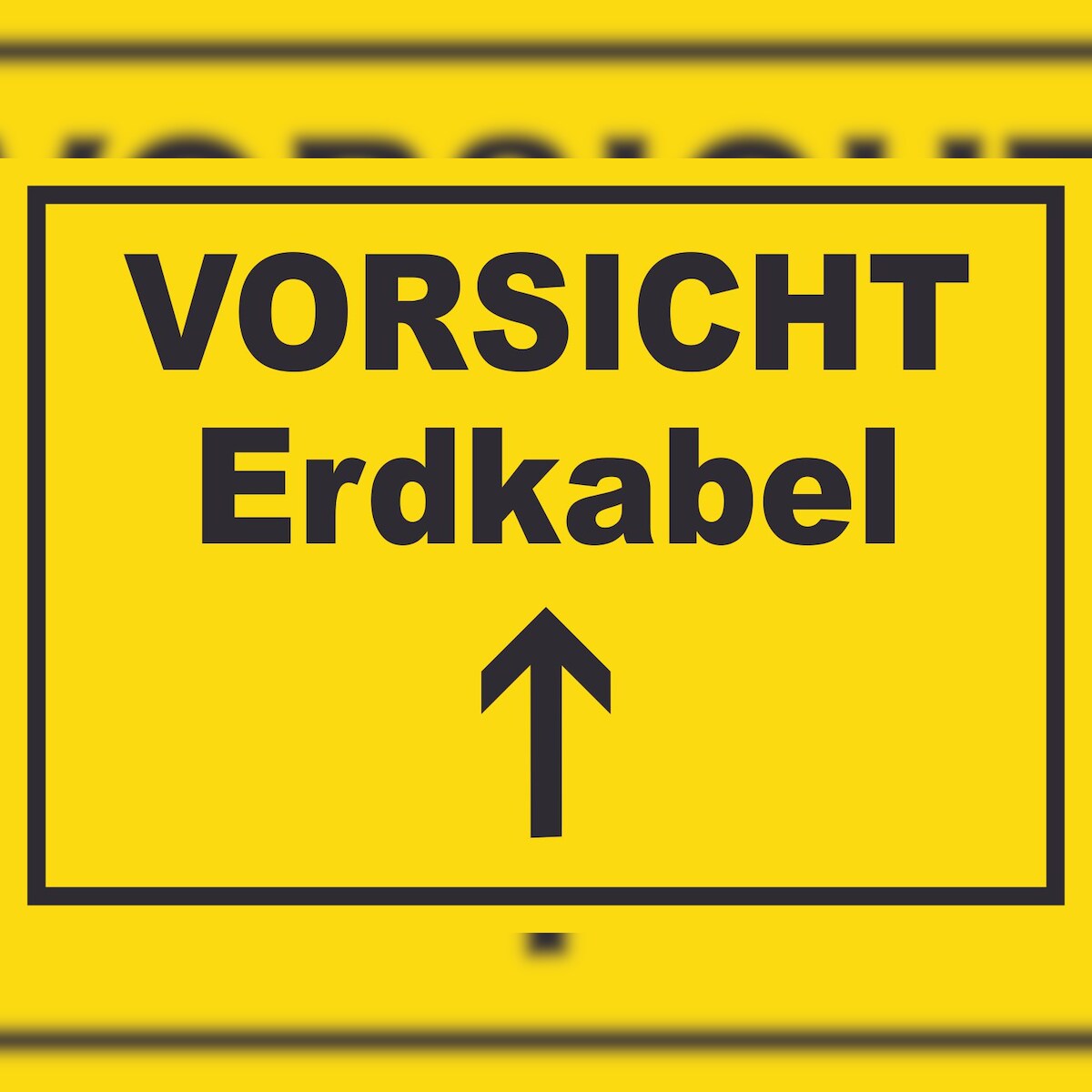 HB-Druck Vorsicht Erdkabel mit Richtungspfeil oben Schild A1 Rückseite selbstklebend