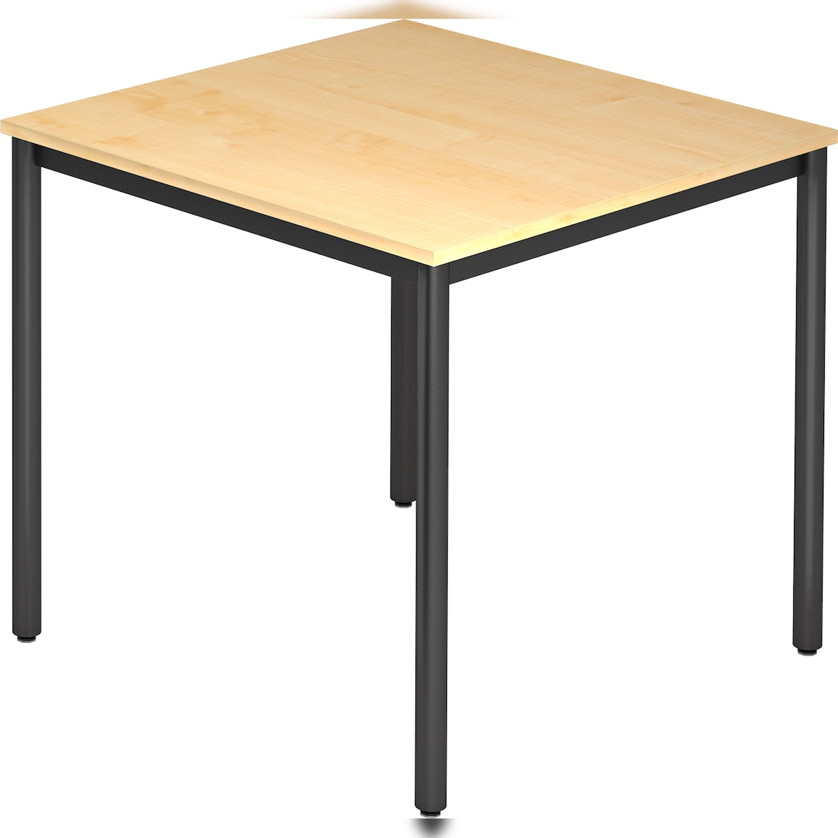 bümö Multifunktionstisch Ahorn, Tisch 80 x 80 cm, Tischfuß rund in schwarz - einfacher Tisch klein, Besprechungstisch System D-Serie, Konferenztisch,