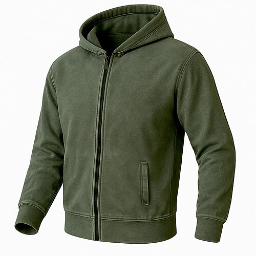 Per uomo Felpa con cappuccio Felpa con cappuccio a zip intera Nero Verde militare Verde Grigio Con Cappuccio Semplice Con zip Sport Outdoor Casuale Quotidiano Streetwear Cool Abbigliamento Sportivo