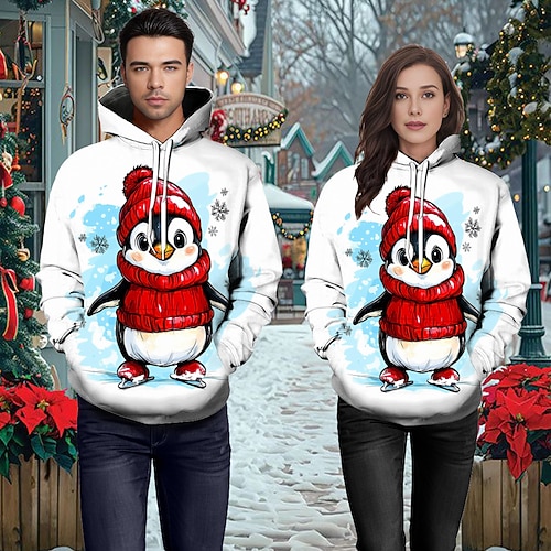 Natale Fantasia animale Pinguino Felpa con cappuccio Felpa con cappuccio natalizia divertente 3D Natale Tasca frontale Grafica Per Da coppia Per uomo Per donna Per adulto Mascherata Stampa 3D Feste