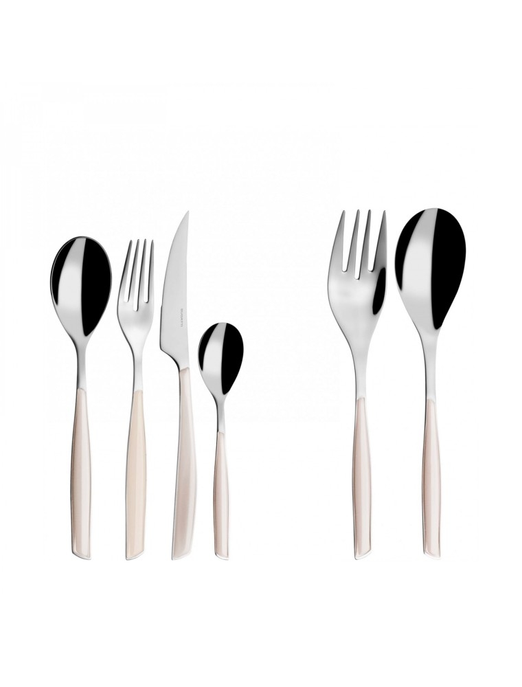 glamour, 50-teiliges besteckset mit beigefarbenen griffen, in einer galeriebox, casa bugatti