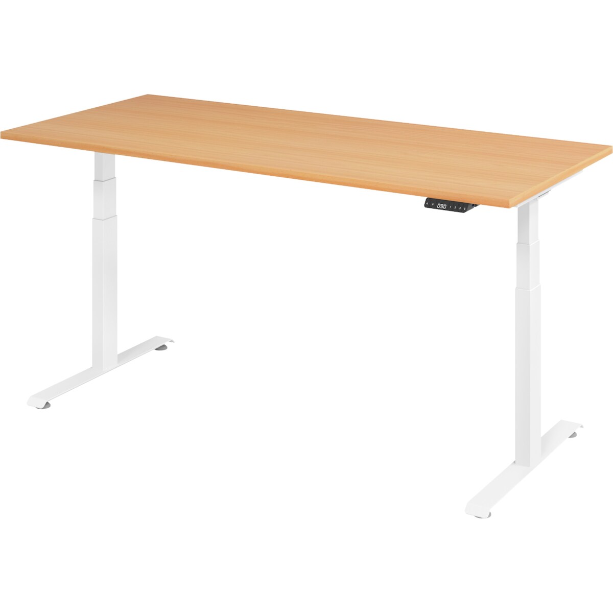 bümö höhenverstellbarer Schreibtisch 180 x 80 cm in Buche, Gestell weiß - Höhenverstellbar Elektrisch Stehpult mit 3-fach Speicher, Computertisch,
