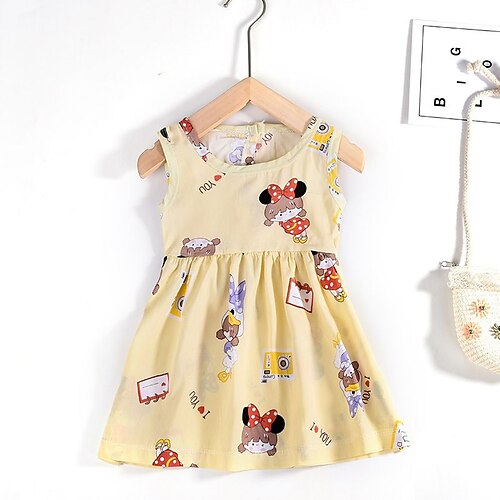 Bambini Ragazze Abito Cartoni animati Senza Maniche Scuola Attivo Quotidiano Cotone Sopra il ginocchio Abito Estivo Primavera Autunno 7-13 Anni